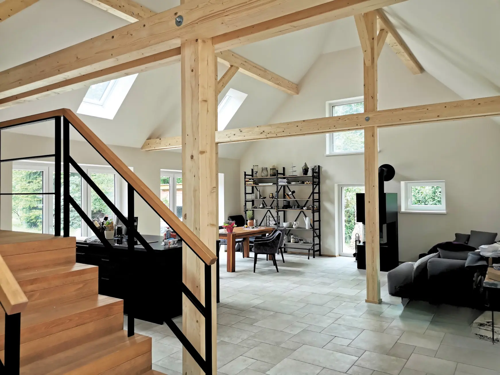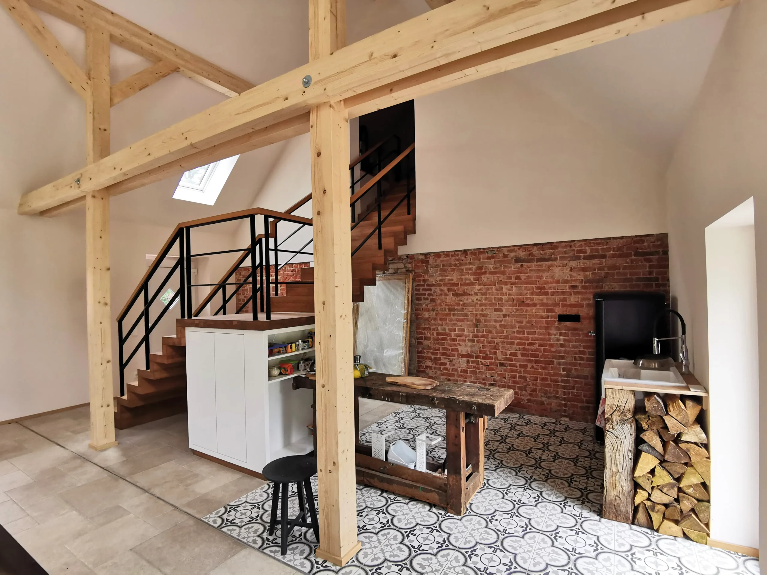 Der ehemalige Stall wurde zu Wohnzwecken umgenutzt und das Dachgeschoss ausgebaut. Im Zuge der Maßnahme erfolgte eine energetische Sanierung nach KfW-Standard sowie die Installation einer Erdwärmepumpe.