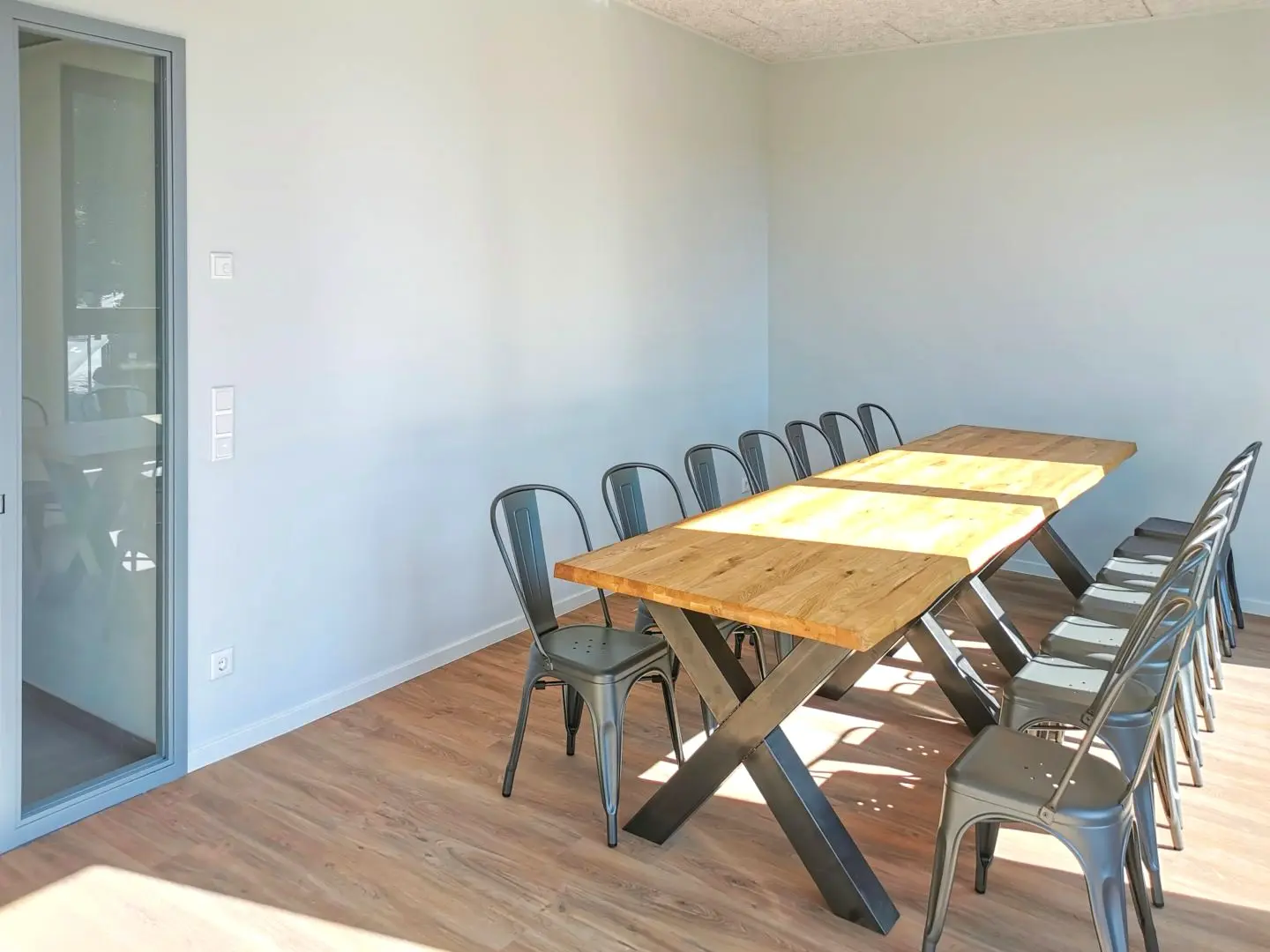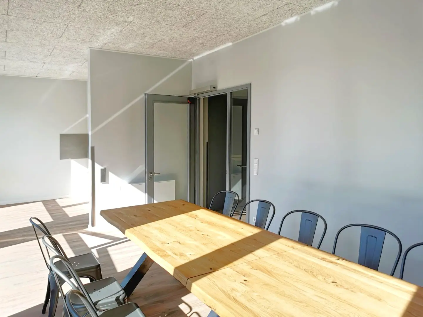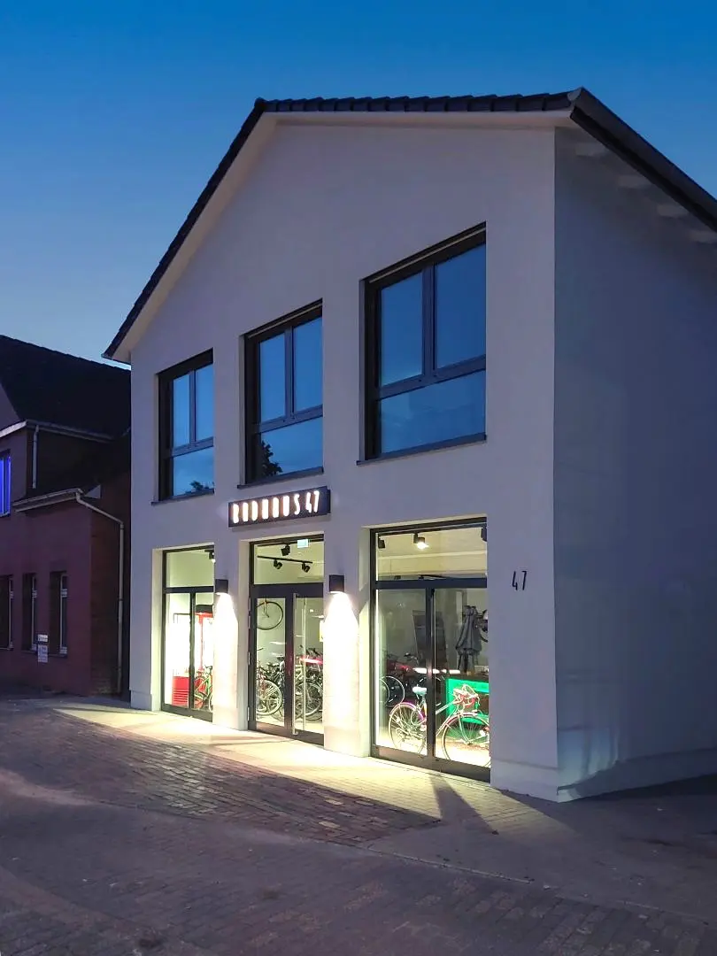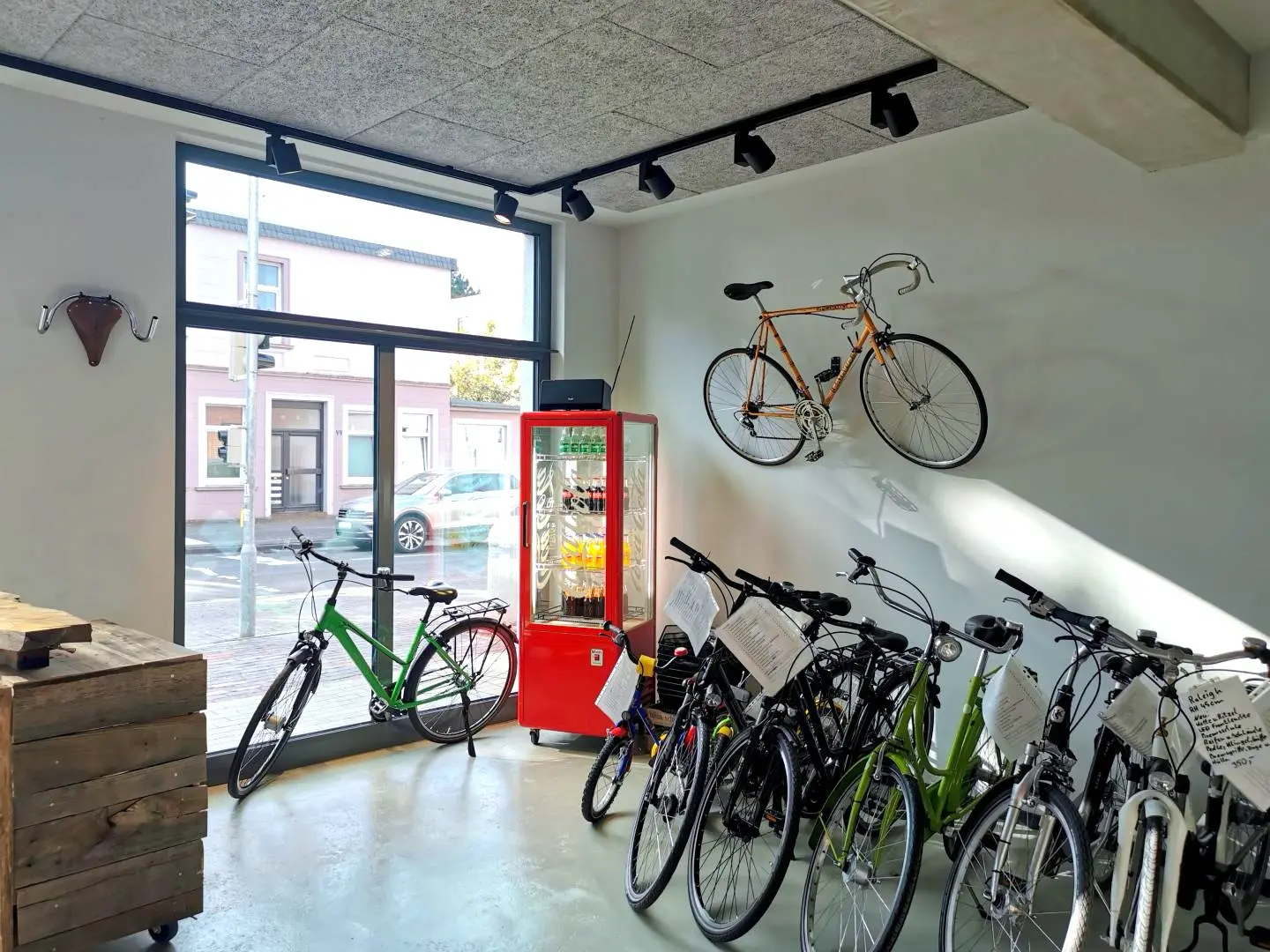 Neubau einer Fahrradwerkstatt mit Verkaufsfläche und zwei Wohneinheiten. Das Gebäude vereint eine Gewerbeeinheit mit Laden und Werkstatt sowie Wohnraum für Menschen mit Beeinträchtigung.