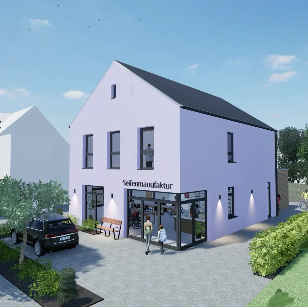 Neubau einer barrierefreien Seifenmanufaktur für die Herstellung und den Verkauf von Seifenprodukten. Die Flächen sind auf kurze Wege und klare Abläufe ausgelegt: ein funktionsgetrennter Produktionsbereich mit angeschlossener Verkaufsfläche sowie die notwendigen Nebenräume. Die stufenlose Erschließung gewährleistet eine durchgängig barrierefreie Nutzung.