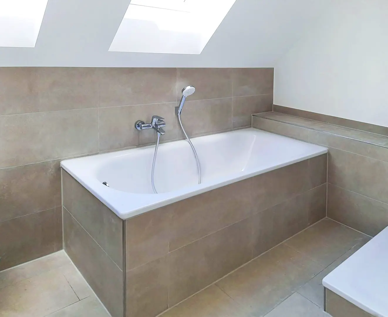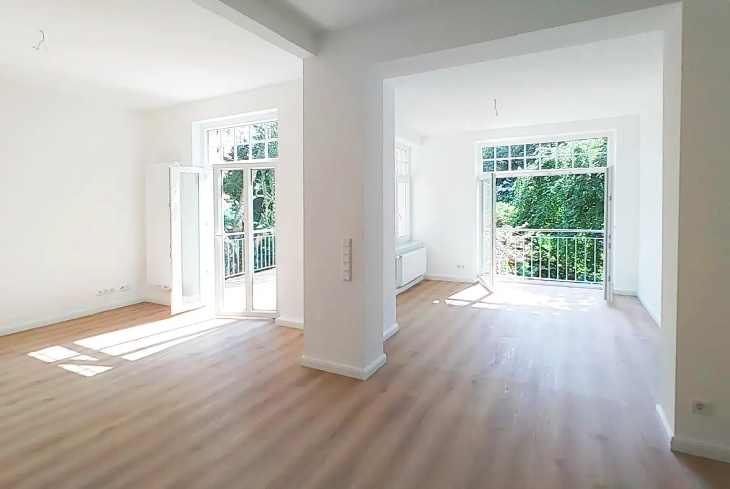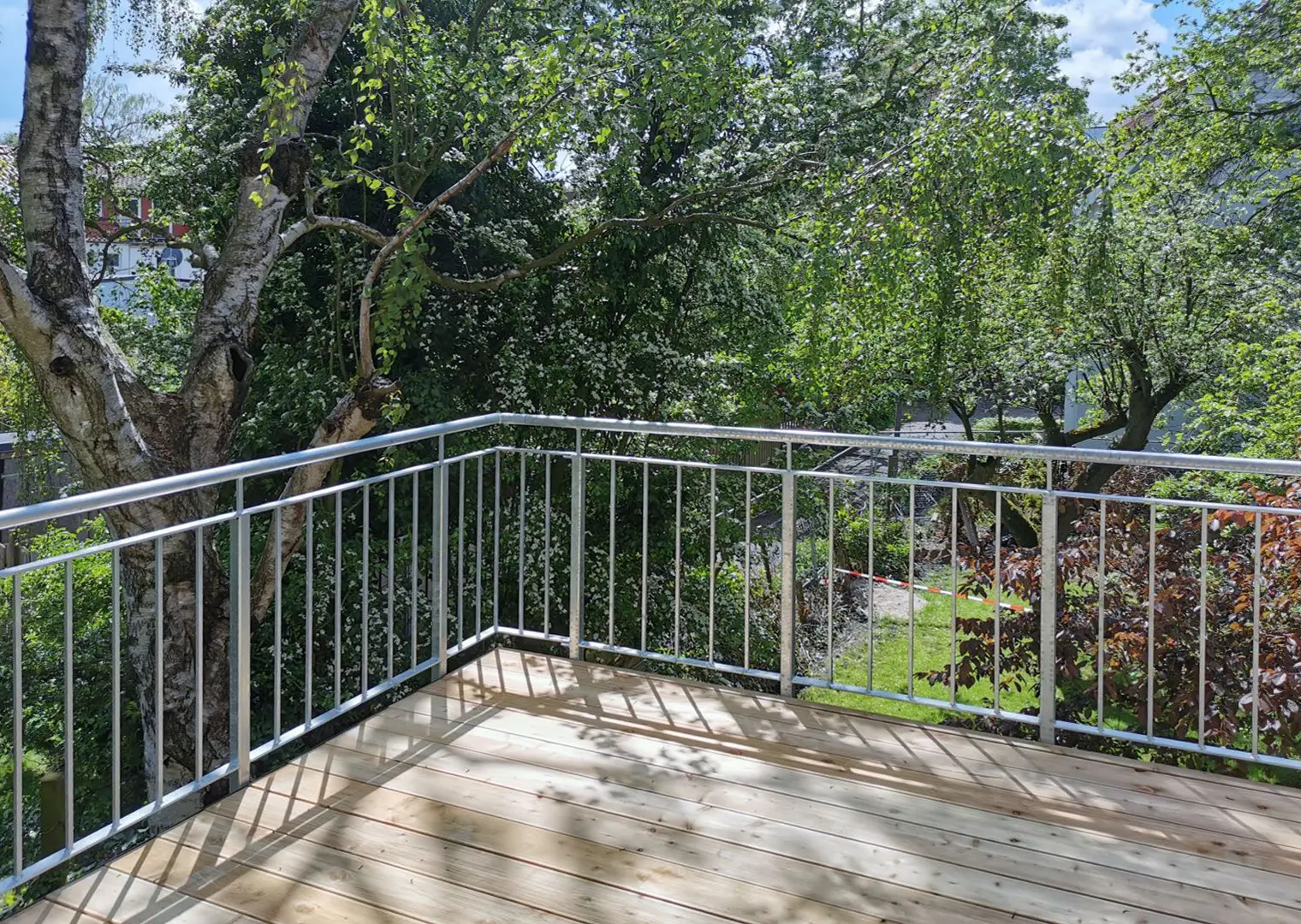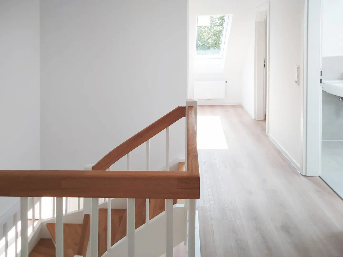 Das Stadthaus von 1912 mit zwei Wohneinheiten verfügte über einen nichtausgebauten riesigen Dachboden. Die Erdgeschosswohnung war bewohnt. Die Obergeschosswohnung stand über einen längeren Zeitraum leer. Der Umbau erfolgte mit großer Rücksichtnahme auf die Bewohner in der Erdgeschosswohnung. Das Obergeschoss wurde in zwei Wohnungen geteilt. Über den größeren Teil konnte das komplette Dachgeschoss erschlossen werden. So entstand eine Maisonettewohnung mit einen sehr offenen Wohn-Koch-Essbereich im unteren Teil und einem privaten Oberen Teil mit einzelnen Zimmern. Insgesamt umfasst die Wohneinheit 5 Zimmern. Gartenseitig konnte an den offenen Wohnbereich ein Balkon angeschlossen werden. Die kleinere Wohnung wurde als Zweizimmerwohnung umgebaut. Aufgrund der optimalen Grundrissstruktur im Bestand, konnten die baulichen Eingriffe stark minimiert werden. Energetisch wurde das Dach komplett neu aufgebaut und eine zweite Gaube hinzugefügt. Teilweise wurden Fenster ergänzt. Alle Maßnahmen wurden unter Berücksichtigung der erhöhten Brandschutzanforderungen ausgeführt. Der Grundstücksbereich zur Straße wurde umfassend entsiegelt, sodass der typische Charakter einer Vorgartensituation wieder hergestellt werden konnte.
