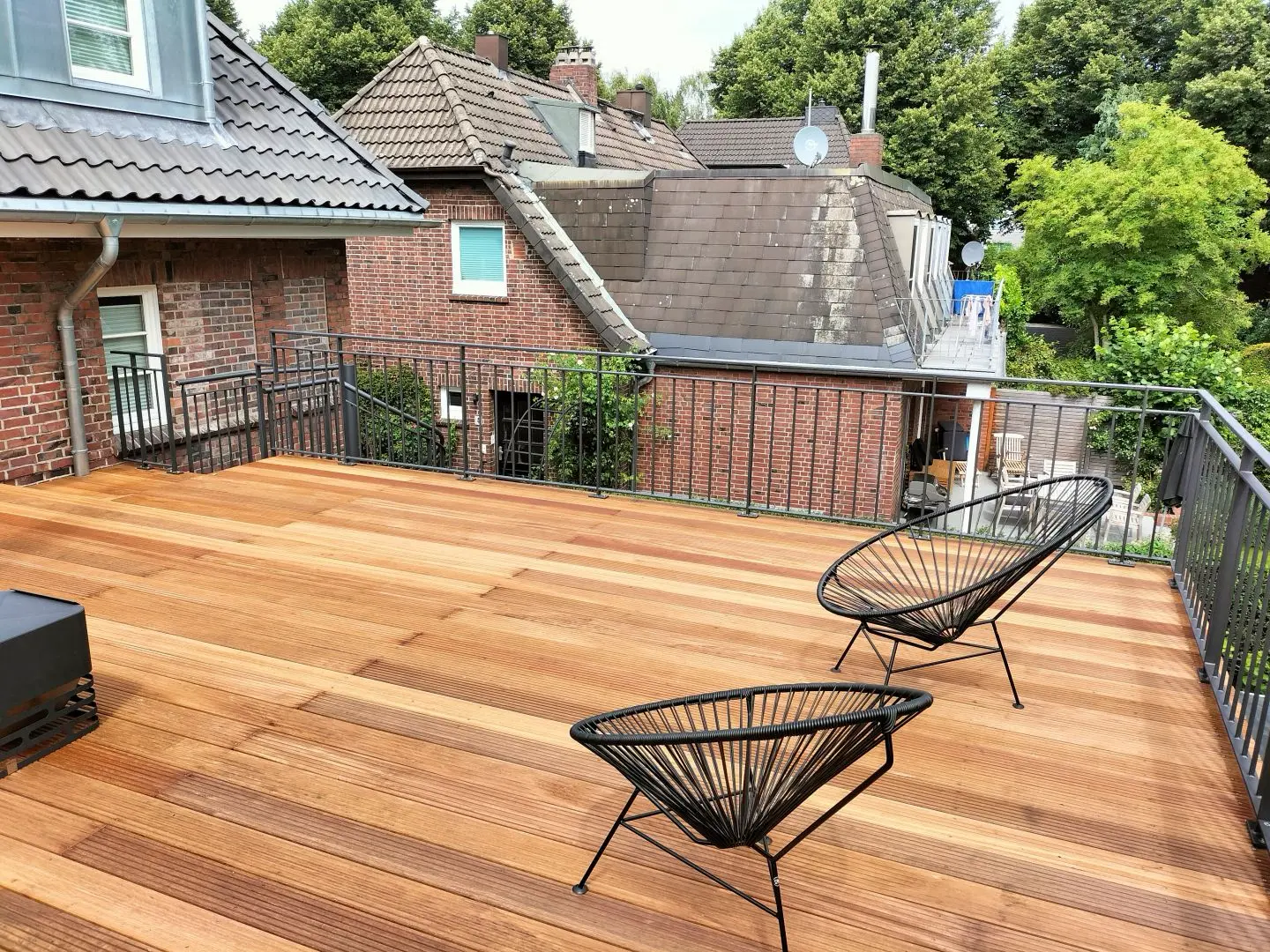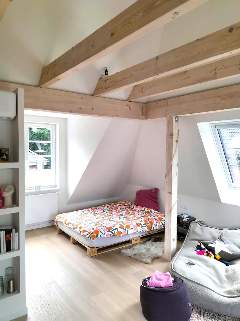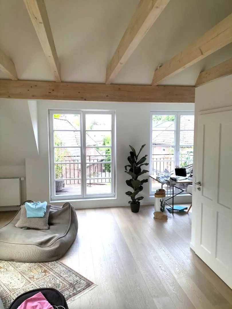 Die Hamburger Kaffeemühle aus den 1930er Jahren wurde aufgestockt und dadurch in ihrer Wohnfläche erweitert. Grundlage ist eine neue Dachkonstruktion, in die eine Loggia sowie Gauben integriert wurden.