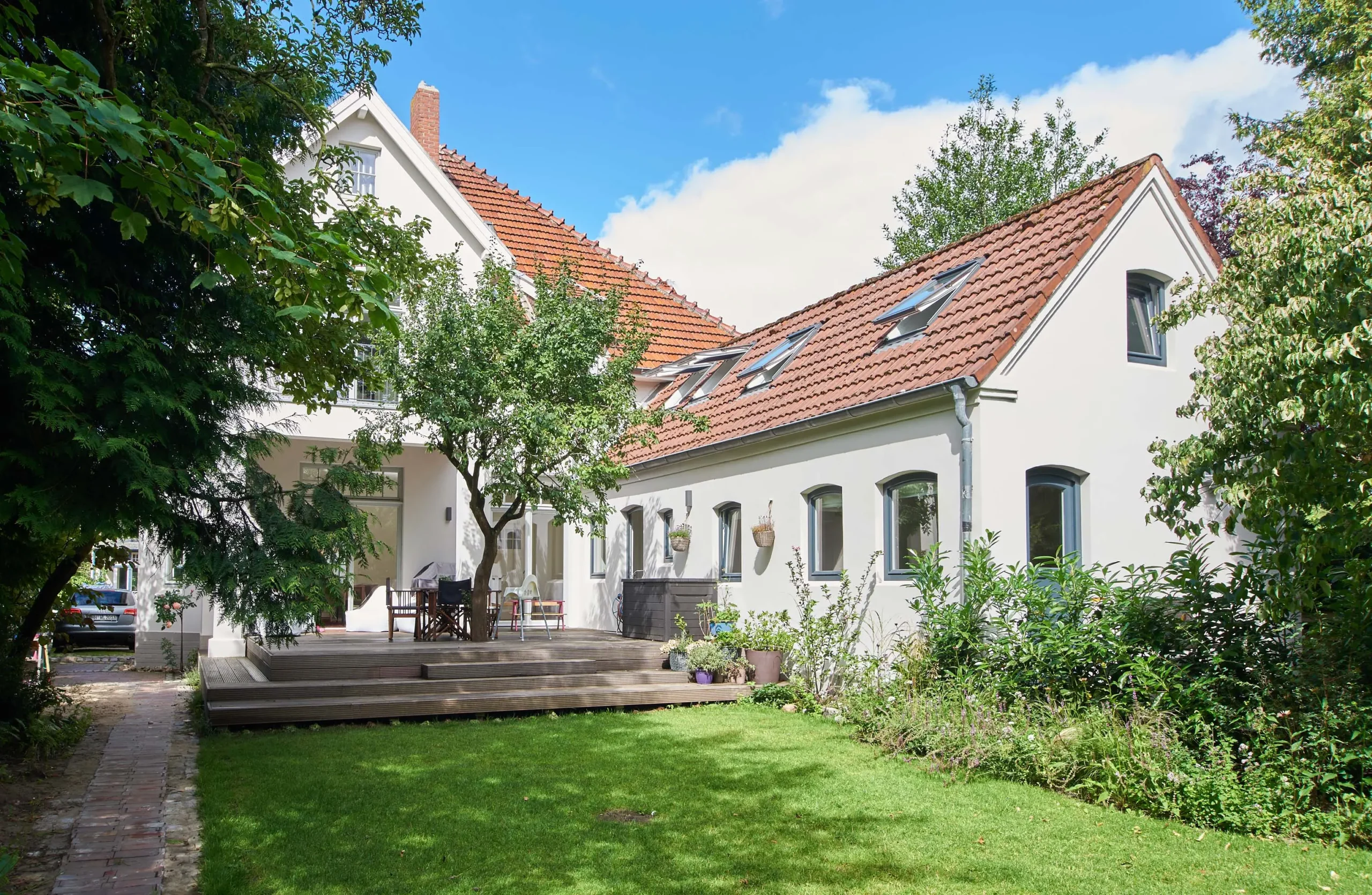 Die Stadtvilla in Hamburg wurde 2018 grundlegend umgebaut und modernisiert. Im Zuge der Maßnahme erhielt das Gebäude eine neue Grundrissgestaltung, um die Räume klarer zu ordnen und besser nutzbar zu machen. Die Bäder wurden vollständig erneuert, ebenso die Haustechnik, wodurch Betrieb und Komfort auf einen aktuellen Stand gebracht wurden. Parallel dazu wurden die historischen Stilelemente sorgfältig aufgearbeitet, sodass der vorhandene Charakter bewahrt und in das modernisierte Gesamtbild integriert wurde.