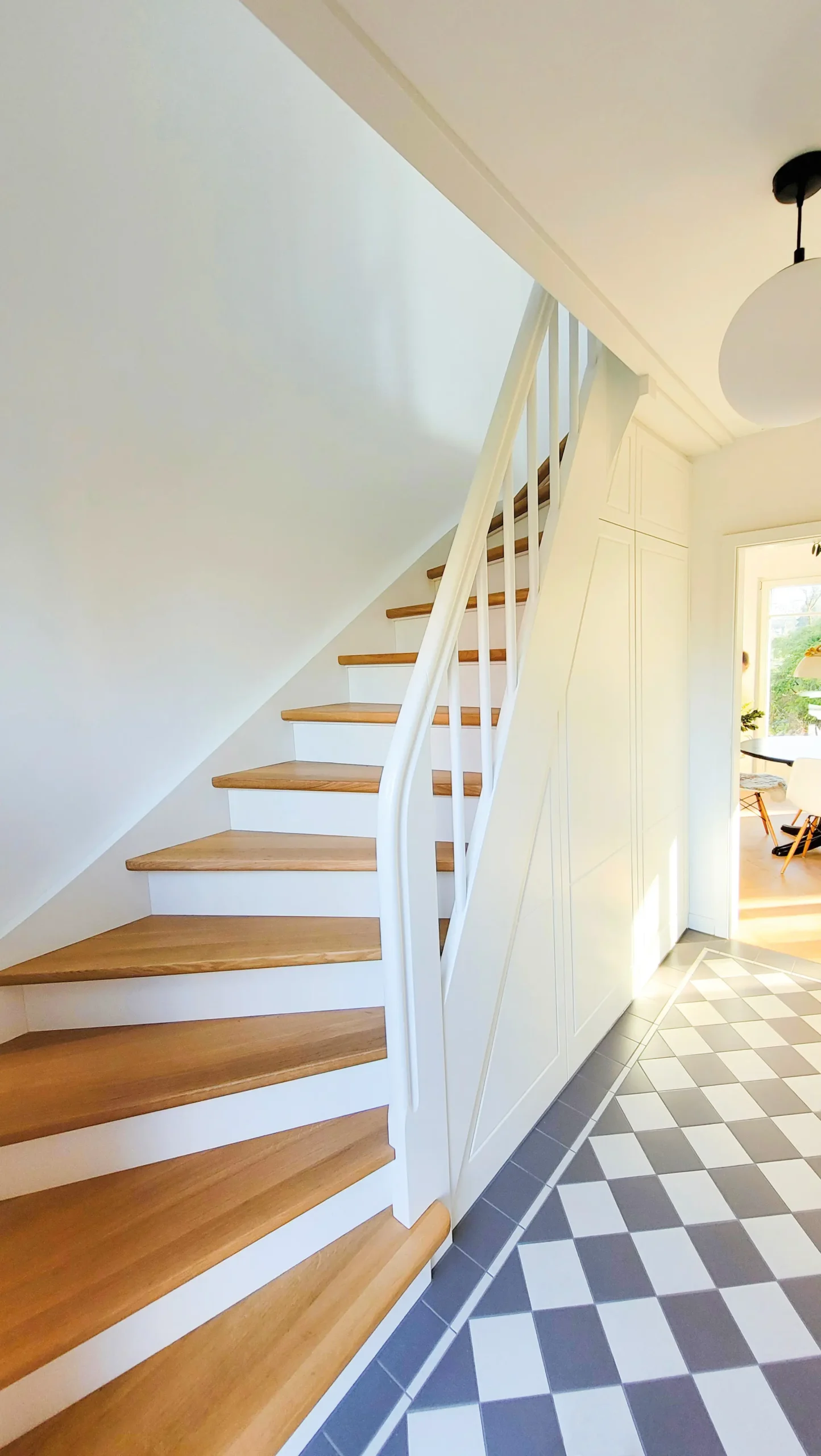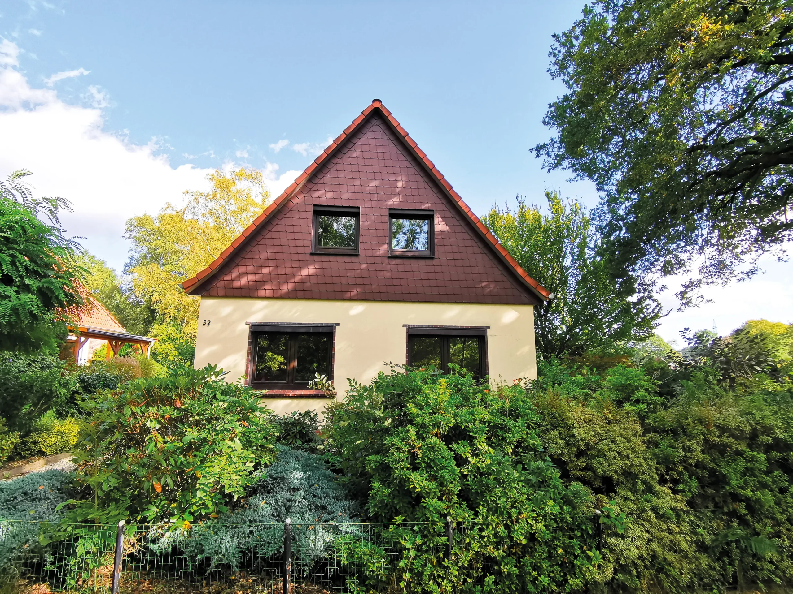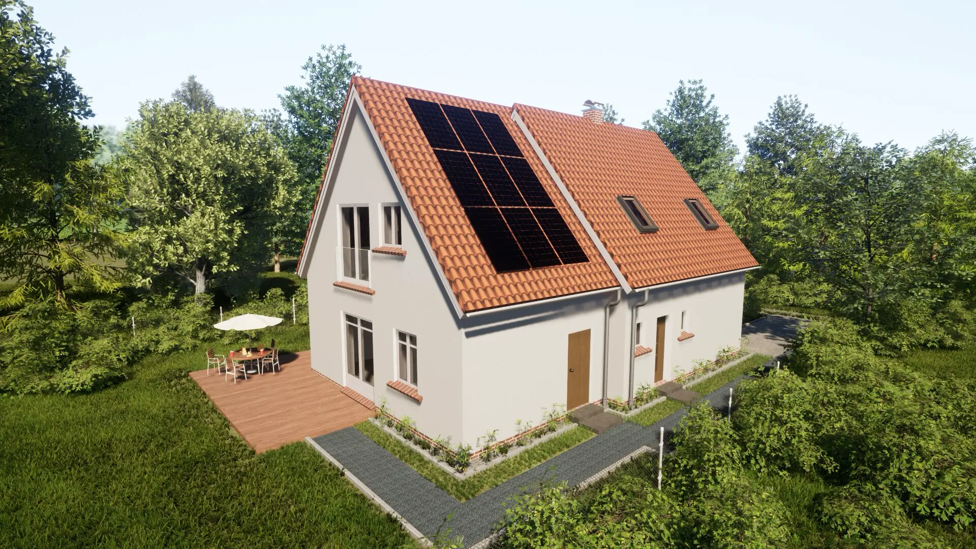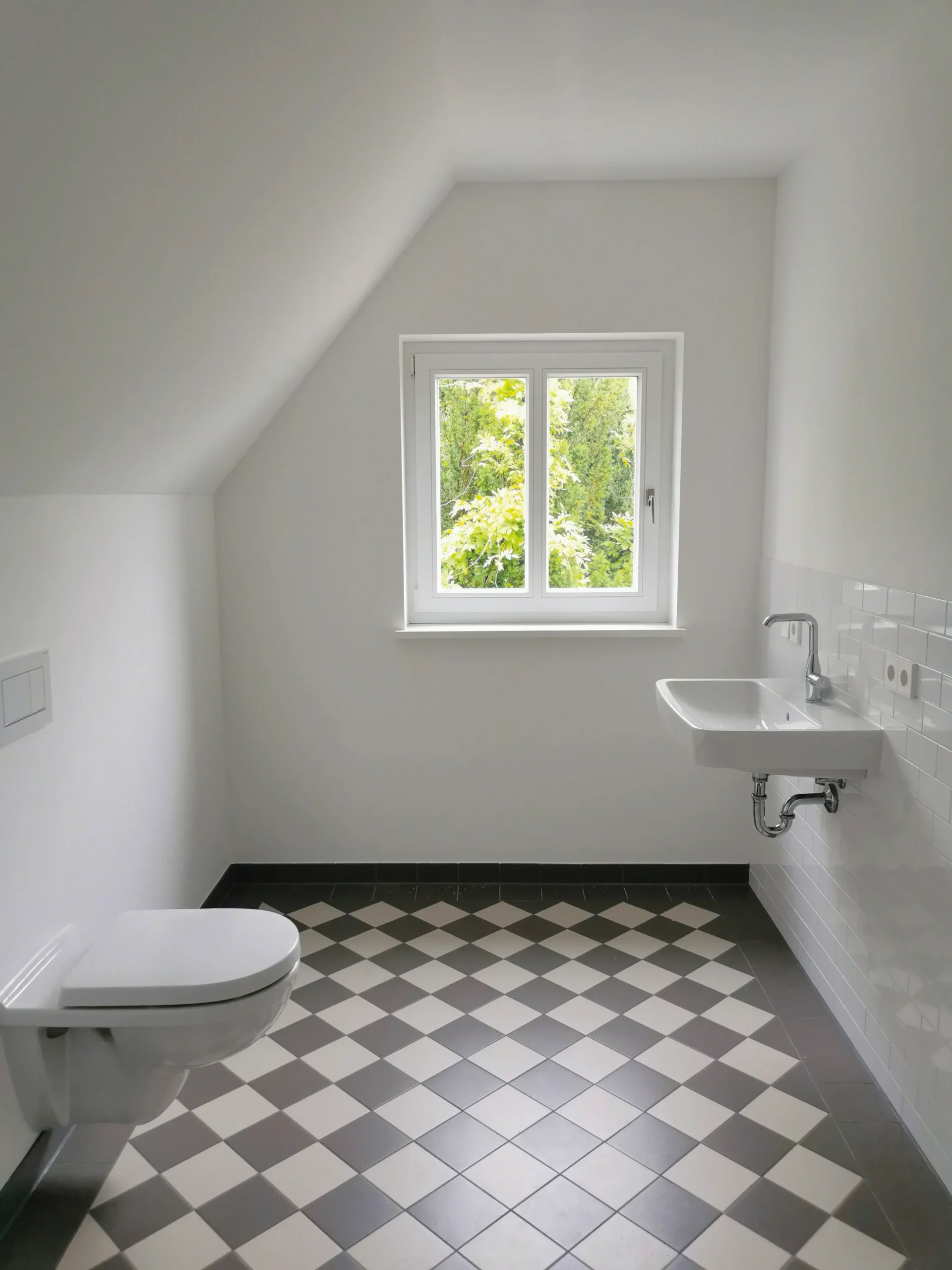 Das Einfamilienhaus aus den 1930er-Jahren liegt im Außenbereich und ist von Natur umgeben. Hinter dem Vorderhaus befand sich ursprünglich ein abgängiger, eingeschossiger Stall, der durch einen Anbau in Holzrahmenbauweise ersetzt wurde. Das gesamte Gebäude erreicht mit dem Umbau den Energiestandard 85 EE. Durch den Anbau wurde das Wohnhaus sinnvoll erweitert und bietet heute vielfältige Räume für das Leben einer Familie. Im Erdgeschoss wurde die Raumstruktur geöffnet, wodurch ein großzügiger, offener Wohnbereich entstanden ist. Das Obergeschoss beherbergt die Schlafräume sowie eine Ankleide und ein Büro. Die Bäder wurden vollständig neu hergestellt, und die Treppe wurde in Anlehnung an ihr historisches Vorbild nachgebaut. Zur Erreichung des energetischen Standards wurden zahlreiche Maßnahmen umgesetzt. Im Vorderhaus wurde eine Kerndämmung eingebracht, während der Anbau vollständig in Holzrahmenbauweise ausgeführt wurde. Das Dach wurde erneuert und die ehemaligen Kunststofffenster durch Holzfenster ersetzt, die die ursprüngliche Fensteraufteilung wieder aufgreifen. Ergänzend wurden eine Luft-Wasser-Wärmepumpe und eine Photovoltaikanlage installiert. Im gesamten Gebäude sorgt eine Fußbodenheizung für zeitgemäßen Wohnkomfort. Besonderer Wert wurde daraufgelegt, den ursprünglichen Charme des Hauses wiederherzustellen. So wurde die vorgehängte Fassade im Giebelbereich entfernt und die charakteristischen Klinkerelemente der Fassade rekonstruiert. Auch die Fenster erhielten ihre ursprüngliche Gliederung zurück. Durch die behutsame Sanierung und den gelungenen Anbau wurde das Gebäude neu belebt und präsentiert sich heute als echter Blickfang innerhalb der Straße.